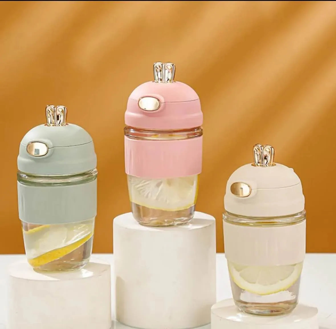 Cute Rabbit Glass Bottle Tumbler Water Cup With Straw And Silicone Sleeve For Home Office School